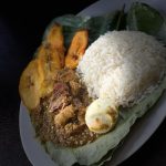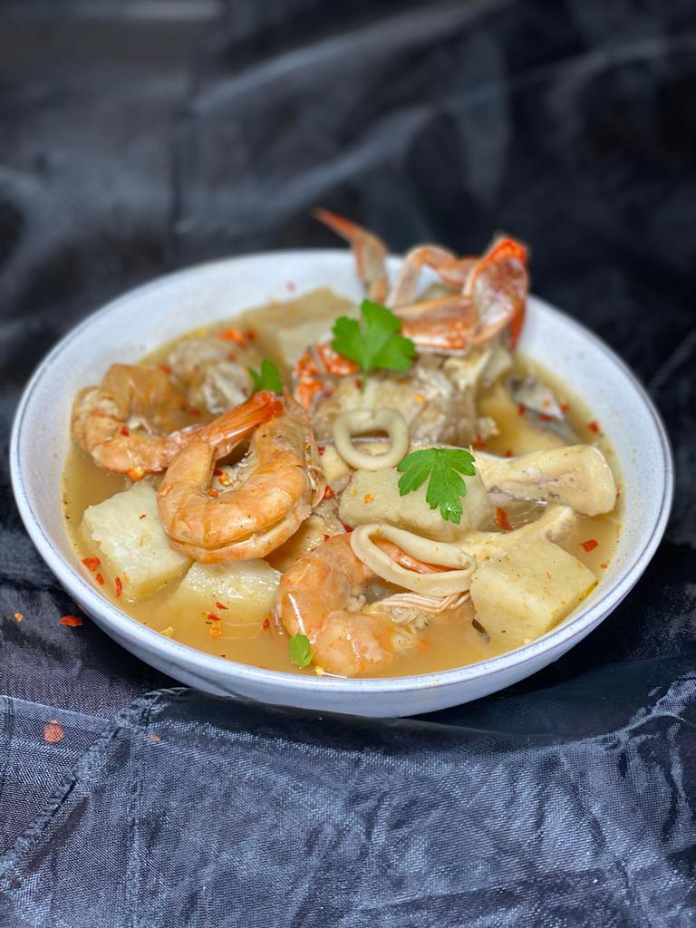 Smooth Egusi served with assorted meat, fish, chicken or beef only and a choice of Pounded Yam, Semovita, Amala, Eba or Fufu